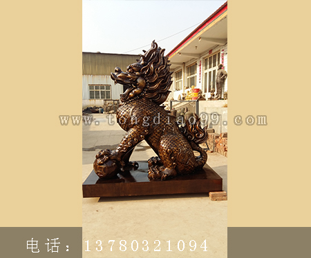 古人把雄性稱麒,雌性稱麟,《宋書》:麒麟者,仁獸也。牡曰麒,牝曰麟。麒麟是吉祥神寵,主太平、長壽;麒麟因其深厚的文化內涵,在中國傳統民俗禮儀中,被制成各種飾物和擺件用于佩戴和安置家中,有祈福和安佑的用意。博創銅雕公司提供各種麒麟銅雕等銅雕的訂做,