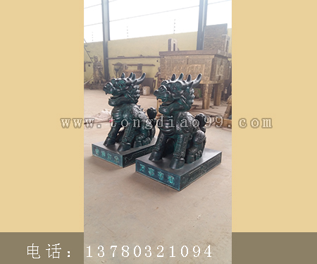 尾毛似龍尾狀舒展。它的綜合面不及龍、鳳那么廣泛,不過名氣也不算小。從古至今不乏能人志士將麒麟的形象以各種形式展現出來。自青銅文化興起后,銅雕麒麟也變得更加廣受歡迎,以銅打造麒麟形象,使人觸及可摸,這樣麒麟在人們心中的形象就變得更加明確。圖為博創銅雕鑄造的麒麟雕像,處處體現出博創銅雕的精湛之處。我公司是多年的銅雕公司,對于鑄造銅雕有著相當豐富的經驗。