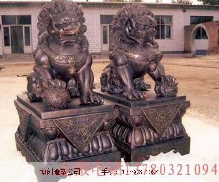 博創銅雕公司專業訂做故宮門獅等等各種銅雕獅子作品,我公司作品品質卓越,得到各地企事業單位的信任。河北博創銅獅子工藝品廠的銅獅子造型美觀,工藝精湛,兇猛威武,盡顯王者氣質。