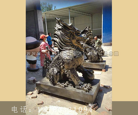 加之佛教對獅子大為推崇,銅獅子護衛也給人們心靈上的安慰"百獸之王",壓邪安吉的象征。銅獅子護衛的主要作用為化煞擋災,一般將之放在桌子上、窗戶臺、書架或者迎著門的矮柜上。建造的廟宇,銅獅子護衛擺放在左邊,銅獅子護衛擺放在右邊。銅獅子護衛不是在正門兩側,比如坐落在廣場前,則純是裝飾取象征意義。圖為博創銅雕鑄造的故宮獅,處處體現出博創銅雕的精湛之處。