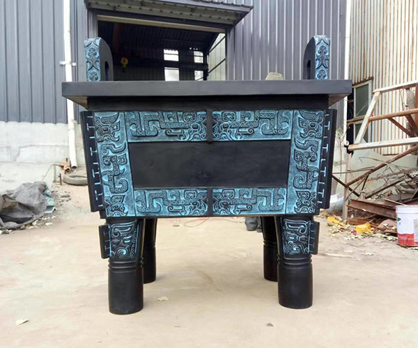 司母戊鼎鑄造于商代晚期,距今已有3000余年的歷史。此鼎1939年出土于中國中部河南省安陽殷墟的一座商代古墓中,因為腹內壁鑄有“司母戊”三字而得名。司母戊鼎是商王為祭祀自己的母親“戊”鑄造的。此鼎形制龐大,造型莊重,長方形的腹部及足上部以云雷紋為地紋,裝飾有獸面紋。一對立耳的外側還裝飾有雙虎噬人首圖案,四立足中空。